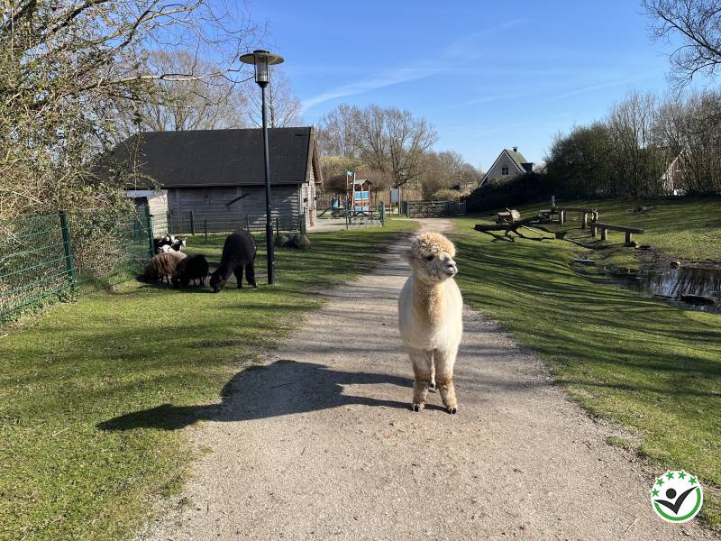 Je kan heerlijk op een terras zitten aan het water. Wij hadden helaas geen zon erbij maar het eten en drinken was heerlijk. Kinderen zitten de hele dag in de speelhal en overdekte speeltuin met somber weer. Er is een hele leuke kinderboerderij met zelfs twee alpaca's!