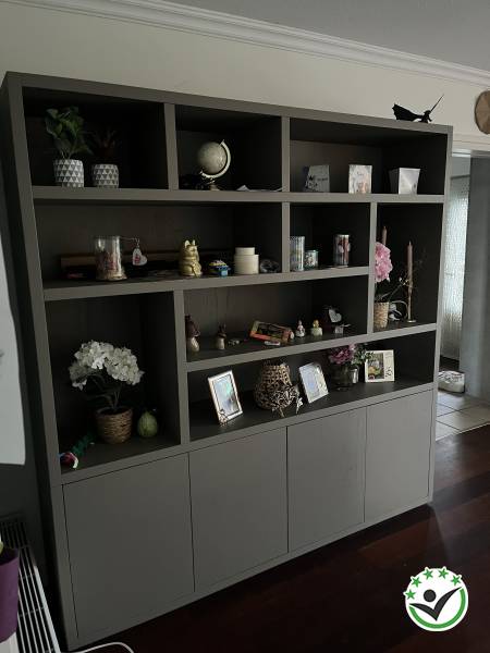 Ps. kasten zijn een beetje volgebouwd, komt door de vele kinderen hier in huis... :-) Heb je er i.i.g. een beeld bij: erg mooie kasten naar onze mening.