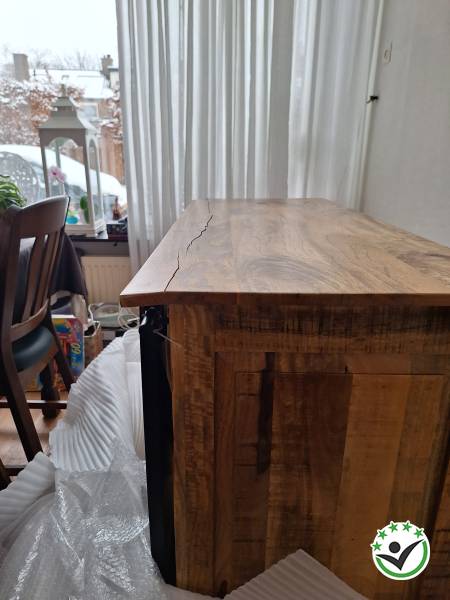De Buffetkast zou op29 januari bezorgd worden. Maar is tot grote woede erg beschadigt en gebroken. En mail en foto's gestuurd er moet een oplossing komen.