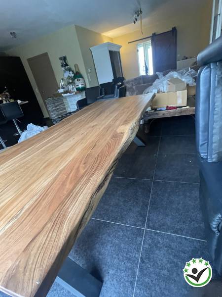 Na de betaling heeft Jordy mij echter enorm goed geholpen. Hij heeft samen met mij alles nagekeken en heeft zelfs geholpen om de tafel binnen te zetten. Niet alles, maar het zware tafelblad van de boomstamtafel heeft hij wel mee binnen gedragen, wat absoluut niet vanzelfsprekend is. Daarvoor verdient hij echt een dikke 10 en mag hij zeker eens in de bloemetjes gezet worden voor zijn service en hulpvaardigheid.